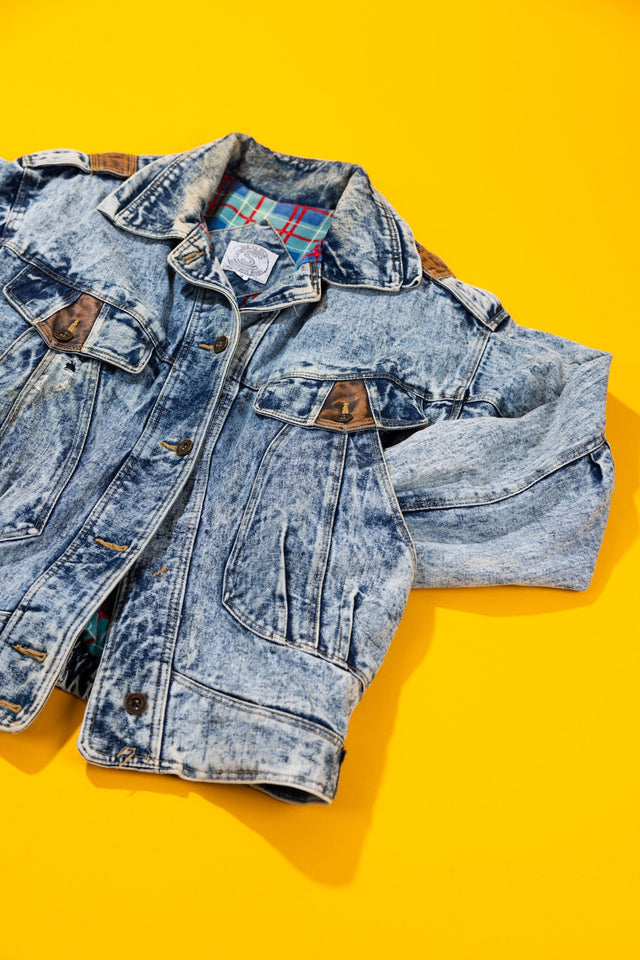 Vintage 80s Be In The Current Scene Acid Wash Denim Jacket
